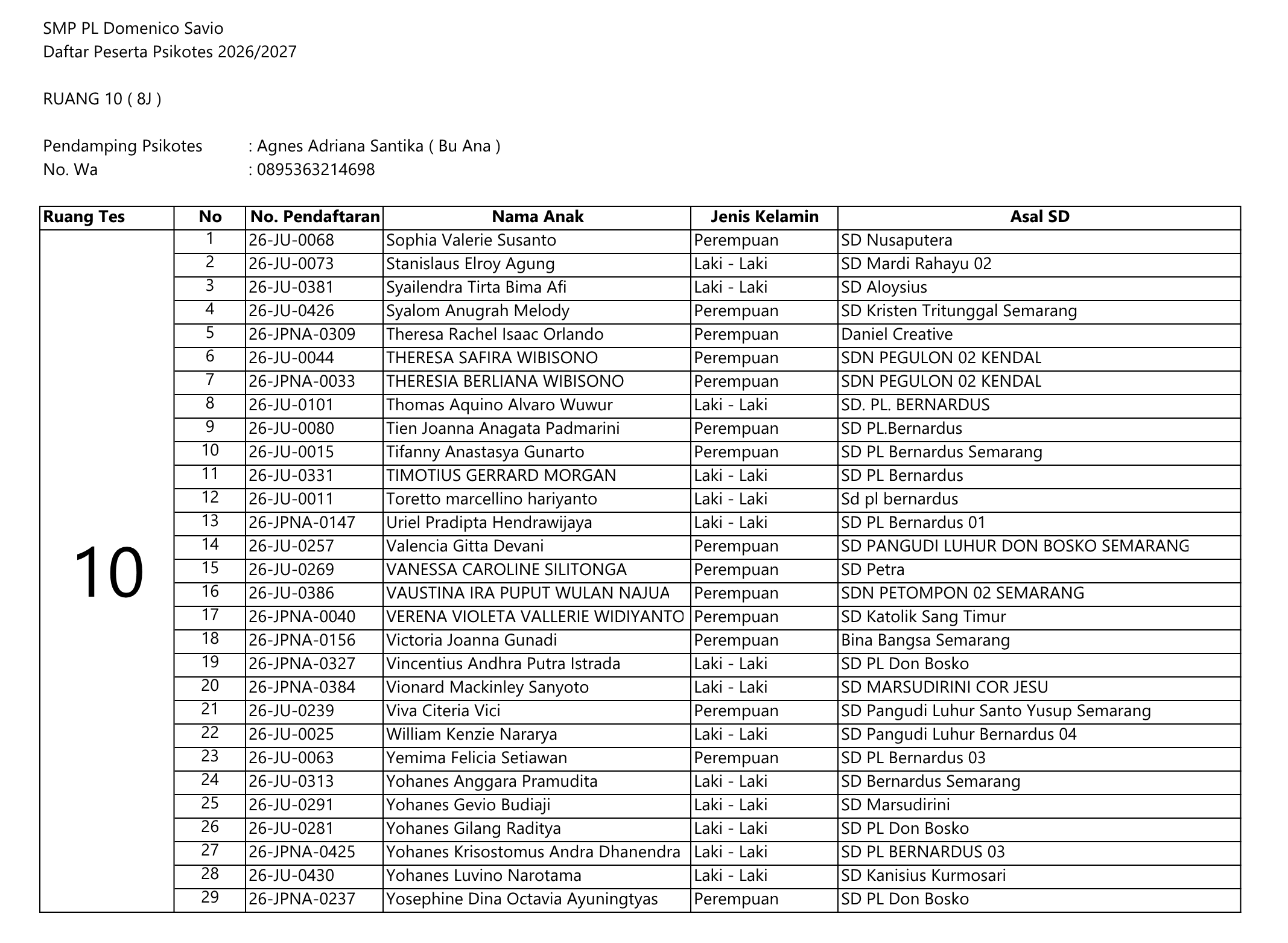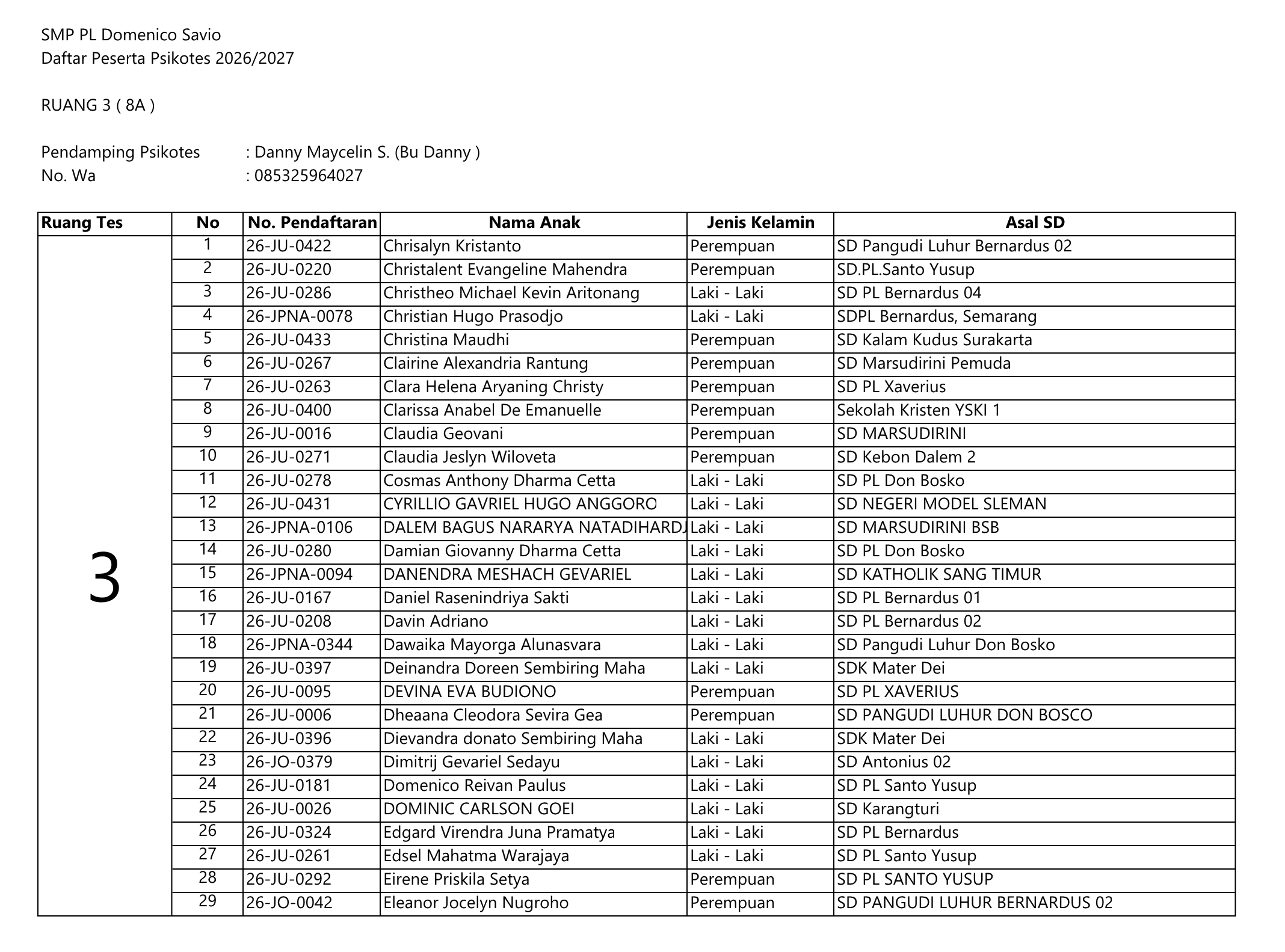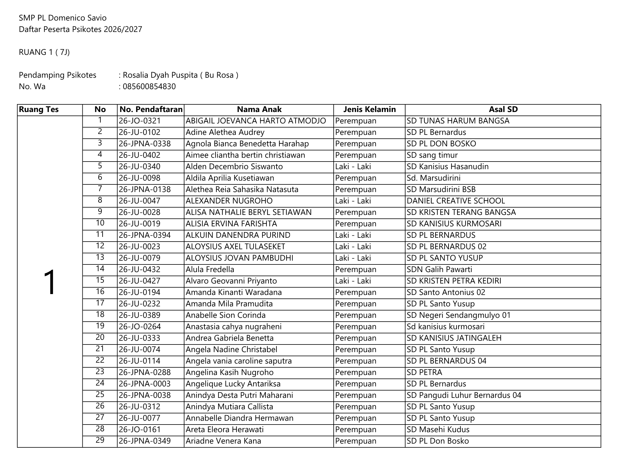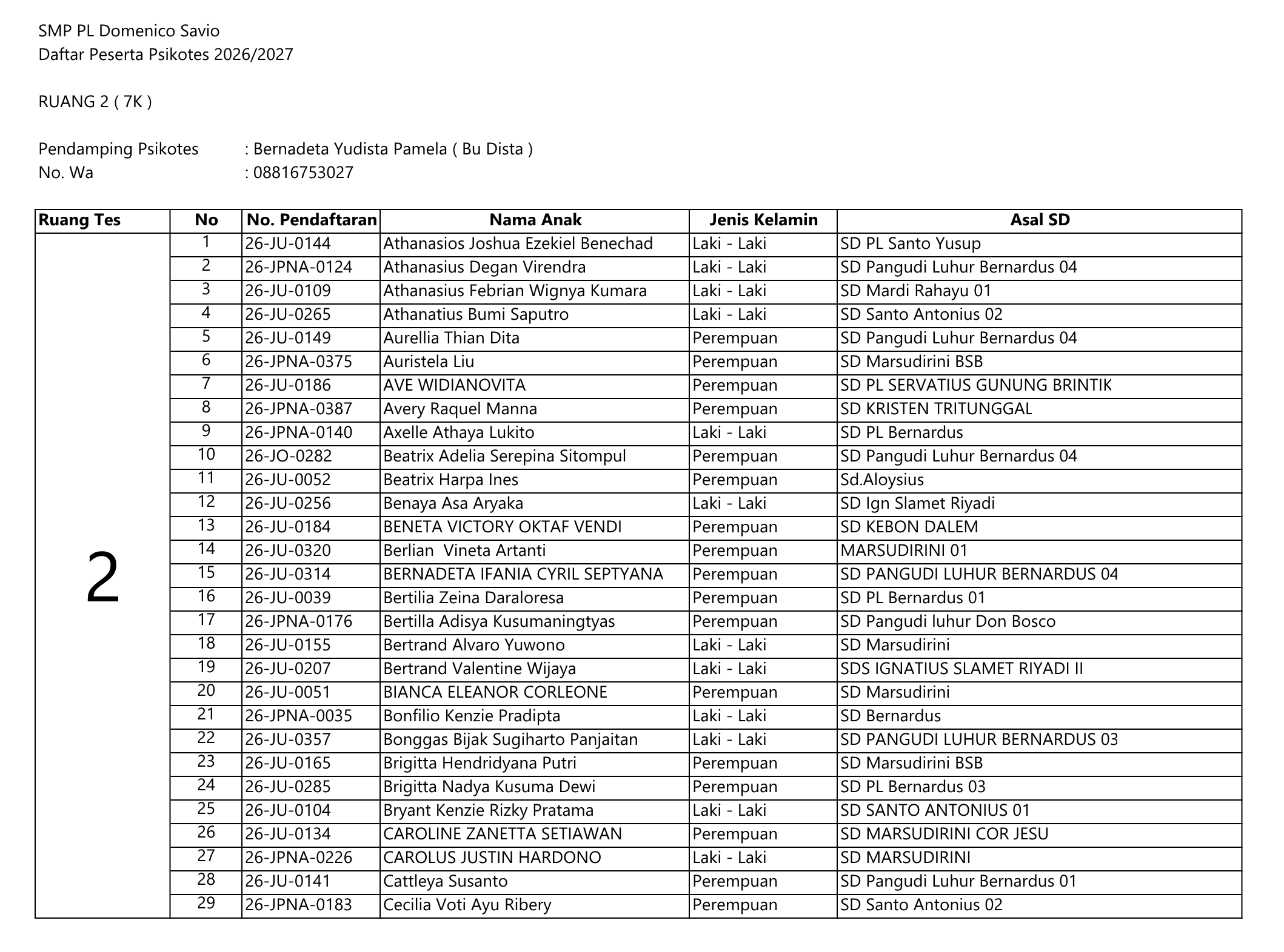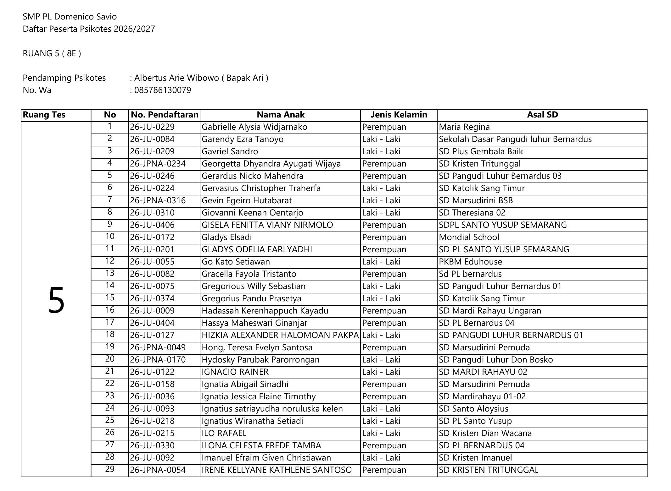 PENGUMUMAN PSIKOTES